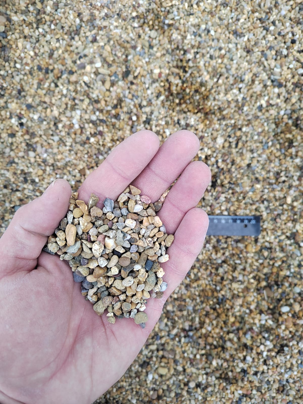 Галька мелкая горная речная окатанная (рыжая)